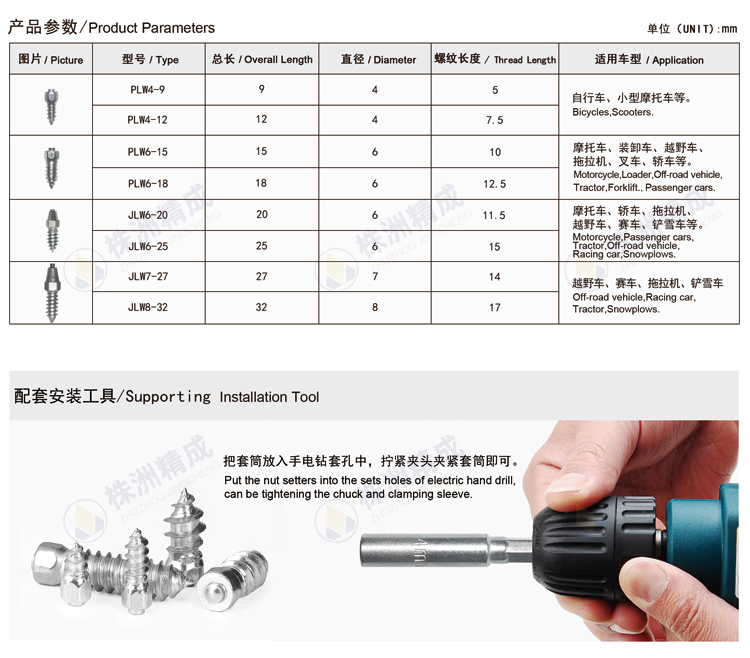 我公司可定做各类硬质合金轮胎防滑钉,欢迎来图来电咨询,电话0731-22966998。